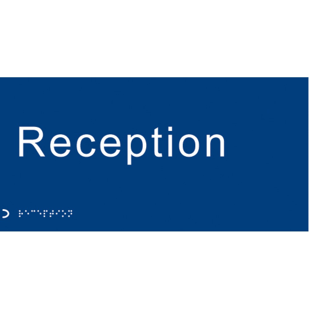 This braille reception sign helps ensure people with visual impairment can easily locate all amenities. The raised letters and braille ensures this general information braille/tactile sign can be read by everyone. Designed to help you meet your obligations under the DDA and Equality Act 2010. Our braille signs have an adhesive backing for easy installation.