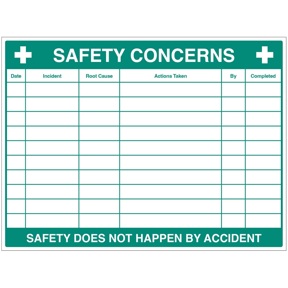Safety Concerns - Dry Wipe Board - Industrial Signs