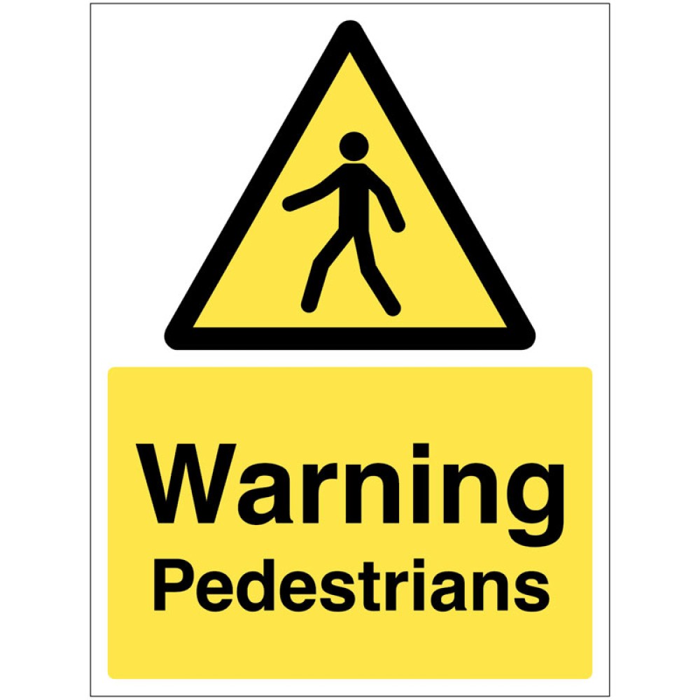Hazard signs are displayed to advise and forewarn of potential dangers. This warning sign advises that the area the driver is about to enter has pedestrians.