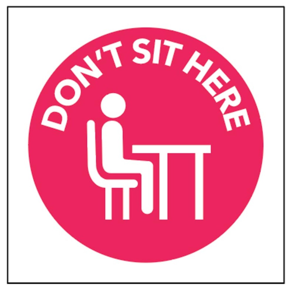 This self-adhesive label (100x100mm) can be used to place on a chair/desk to help compliance with social distancing. Displaying signage like this is an important step to helping shops and businesses to re-open as we get used to the "new normal" and put the necessary measures in place to improve safety, social distancing and hygiene to further minimise the potential impact of COVID19.