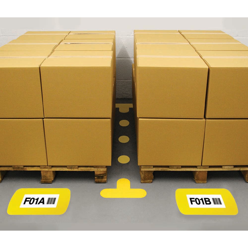 Tough permanent adhesive yellow edged PVC frame that enables a printed message or barcode to be placed inside and protected on the floor. Manufactured using a thin plastic membrane, the frames bond onto the floor surface and are therefore resistant to the rigours of a busy warehouse. Ideal for identifying stock locations or to highlight important information. Displays an A4 message. Alternative frame colours available on request.