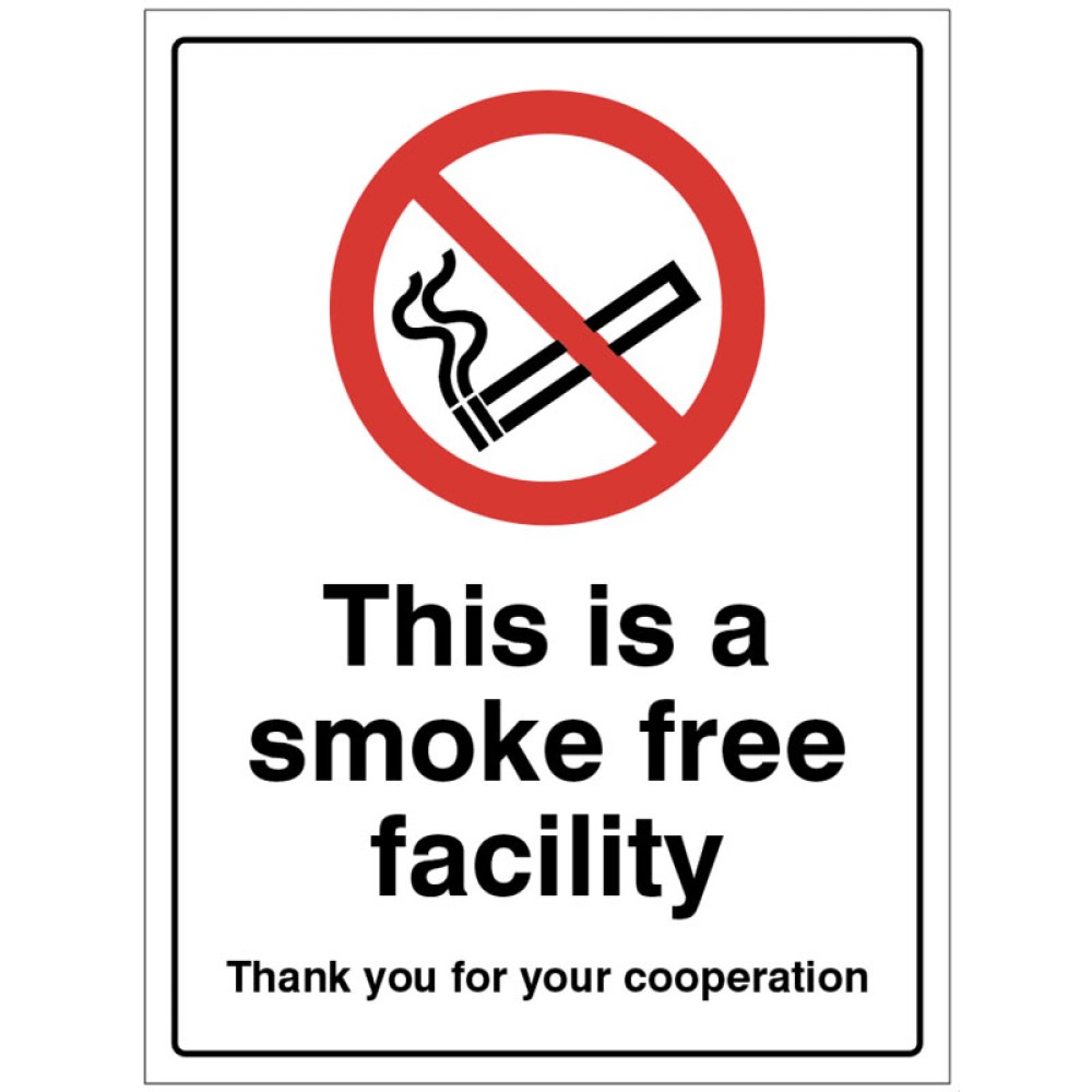 Ensure a clear message about your no smoking policy is displayed and reinforce company policy - ideal to locate at entrance points to larger facilities.