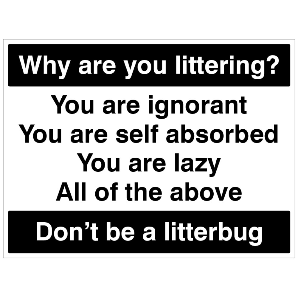 Why Are you Littering - Don't be a Litterbug - Industrial Signs