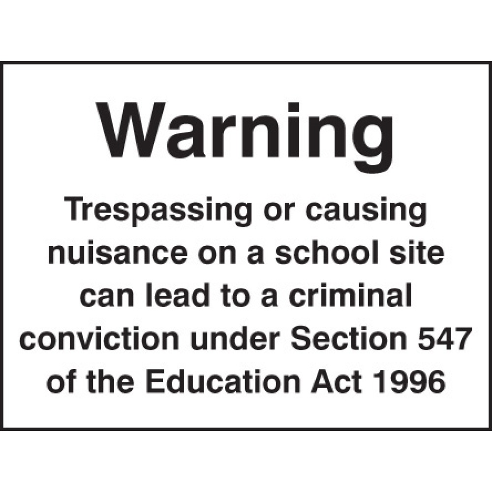 Warning - Trespassing Or Causing Nuisance On a School Site - Industrial Signs