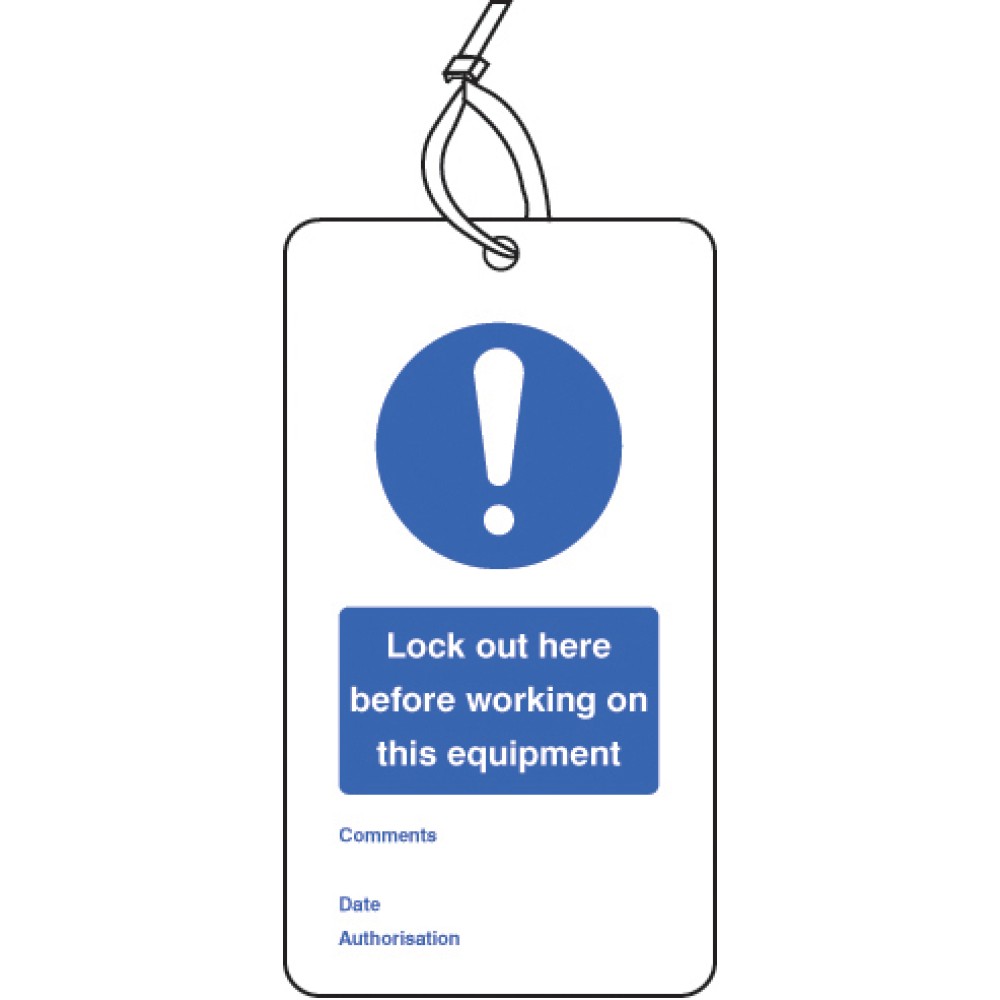 Lockout Tag - Lock Out Here Before Working On - 80 x 150mm (Pack of 10) - Industrial Signs