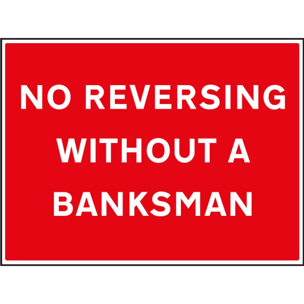 This site traffic safety sign prohibits the drivers reversing without a banksman. Help remind staff that reversing a vehicle can be extremely dangerous and is not permitted unless supervised.