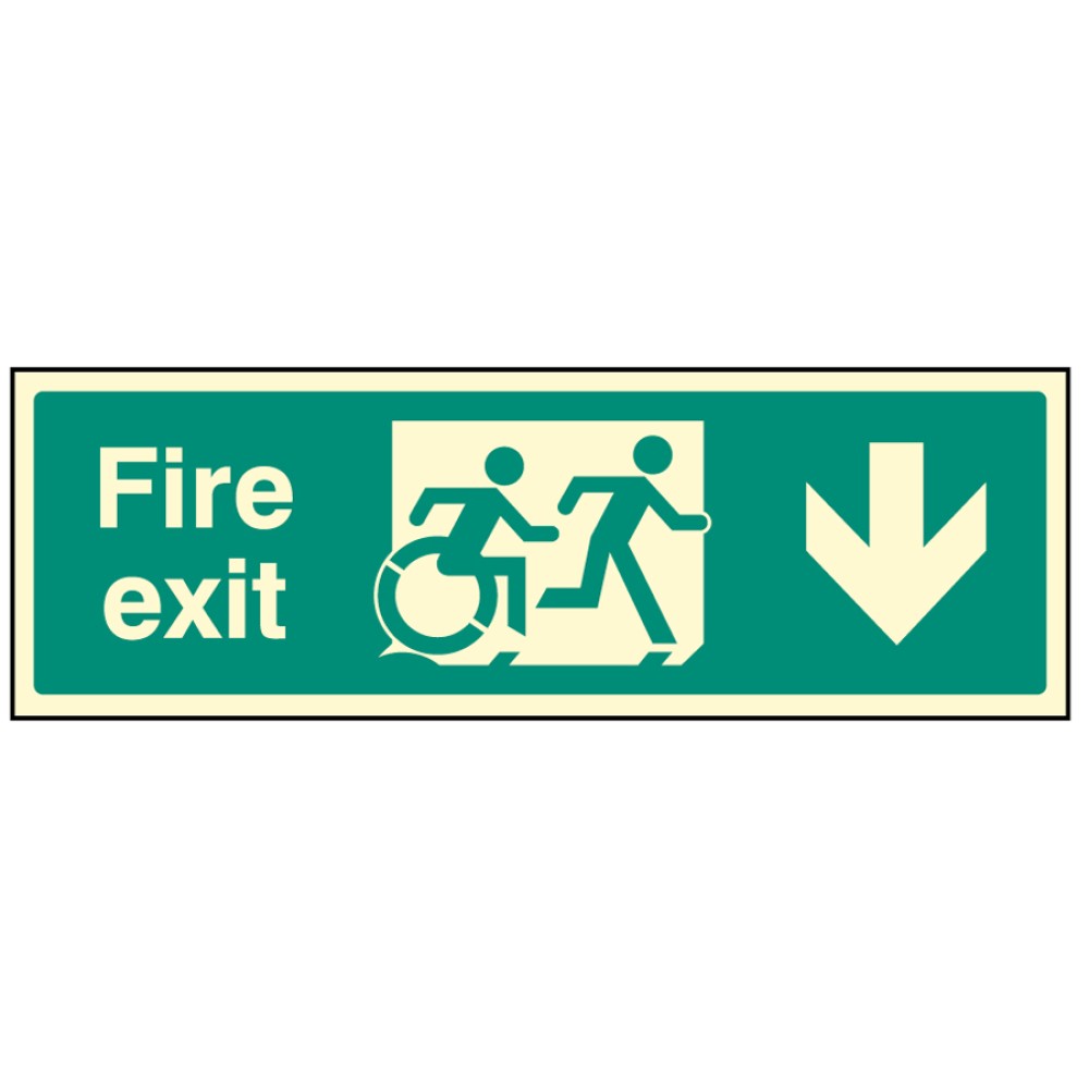 Inclusive Disabled Fire Exit Design - Arrow Down - Industrial Signs