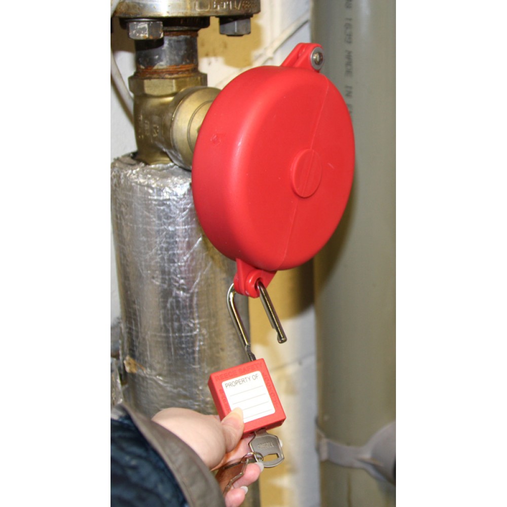 Thermoplastic padlocks with steel shackle (6.3mm dia and 38mm vertical clearance).Temperature resist..