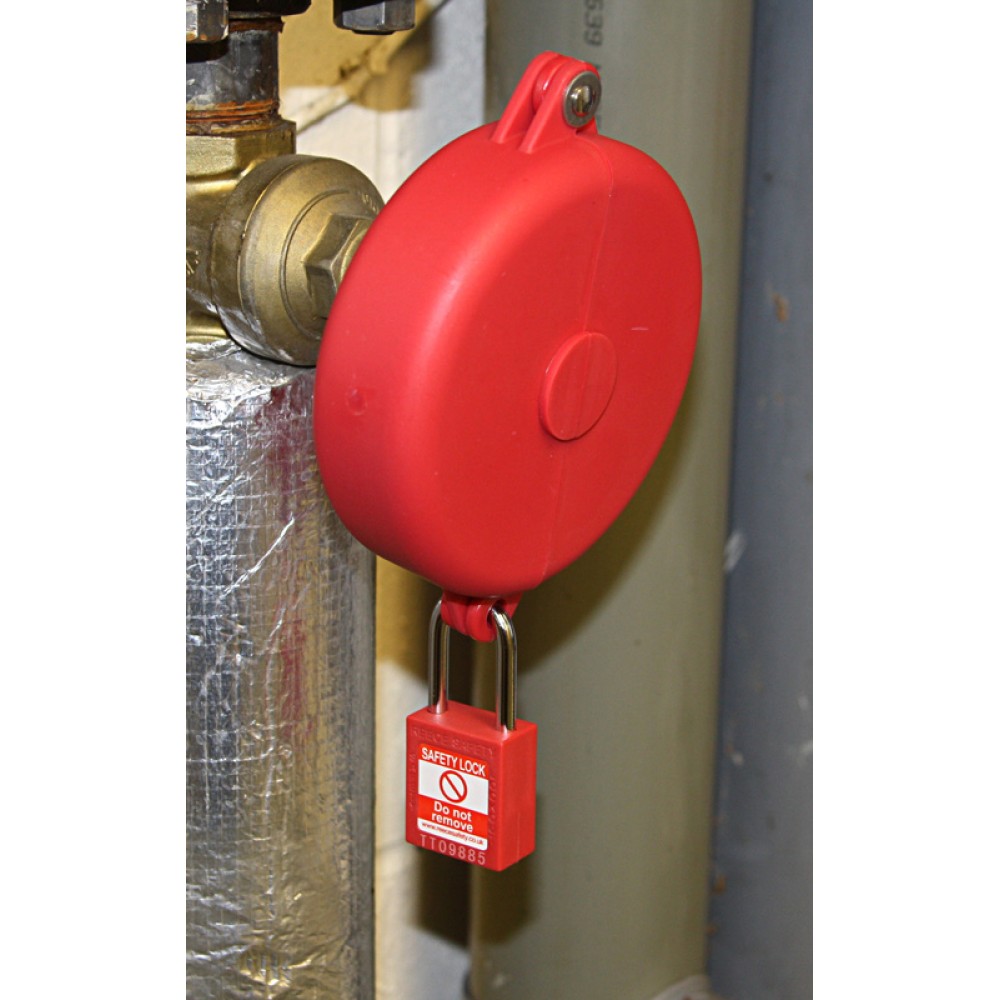 Gate valve covers are a simple, low cost, effective way to prevent unauthorised operation of valves. Valve covers consist of two flattened half moons that completely cover the valve hand wheel. Once locked, the cover rotates freely around the hand wheel preventing operation.