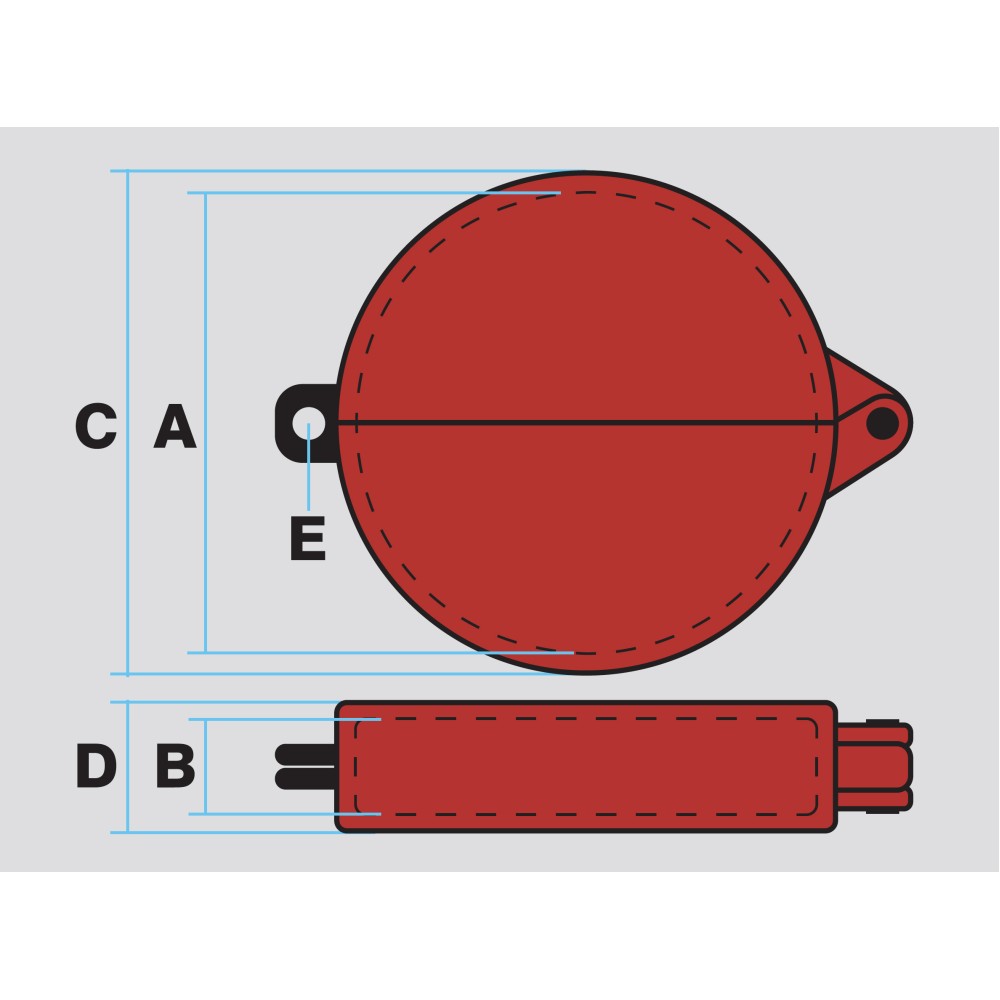 Code 53337: Fits Valve Handle Size: 75-130mm | (A) Inside Diameter: 130mm | (B) Inside Height: 32mm | (C) Outside Diameter: 140mm | (D) Outside Height: 44mm | (E) Lock Hole: 9.5mm