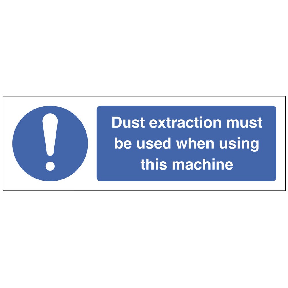 This mandatory sign has been designed to highlight to viewers that dust extractors / extraction must be used when machinery is being used.