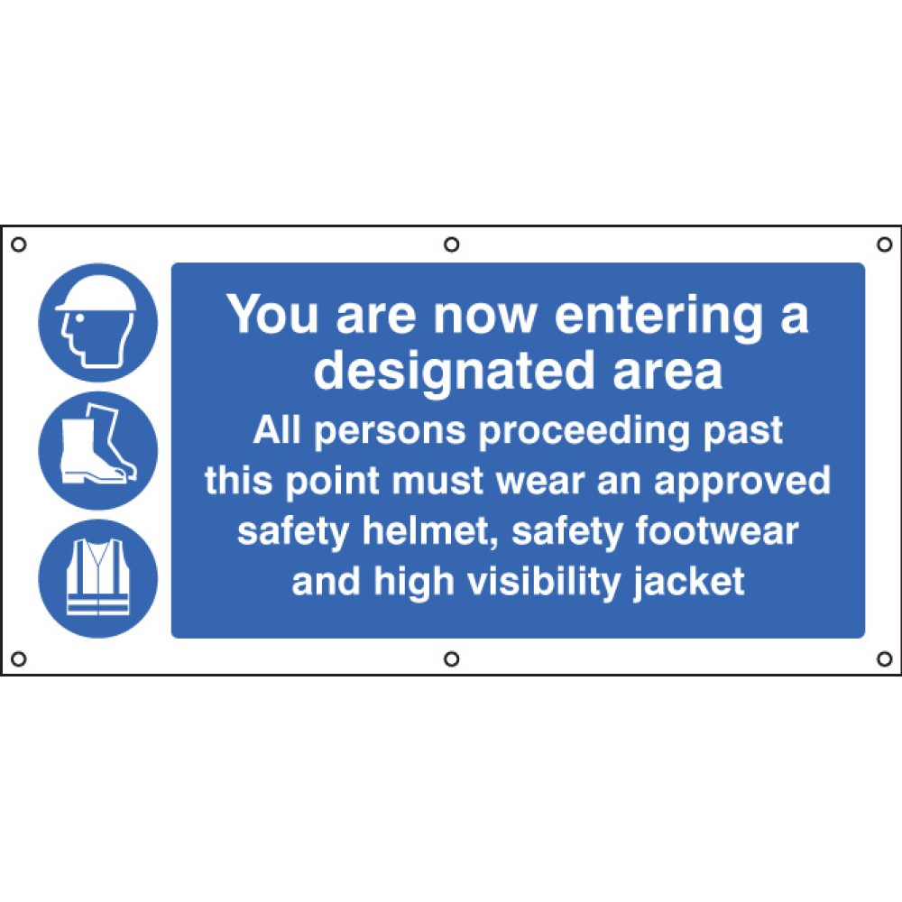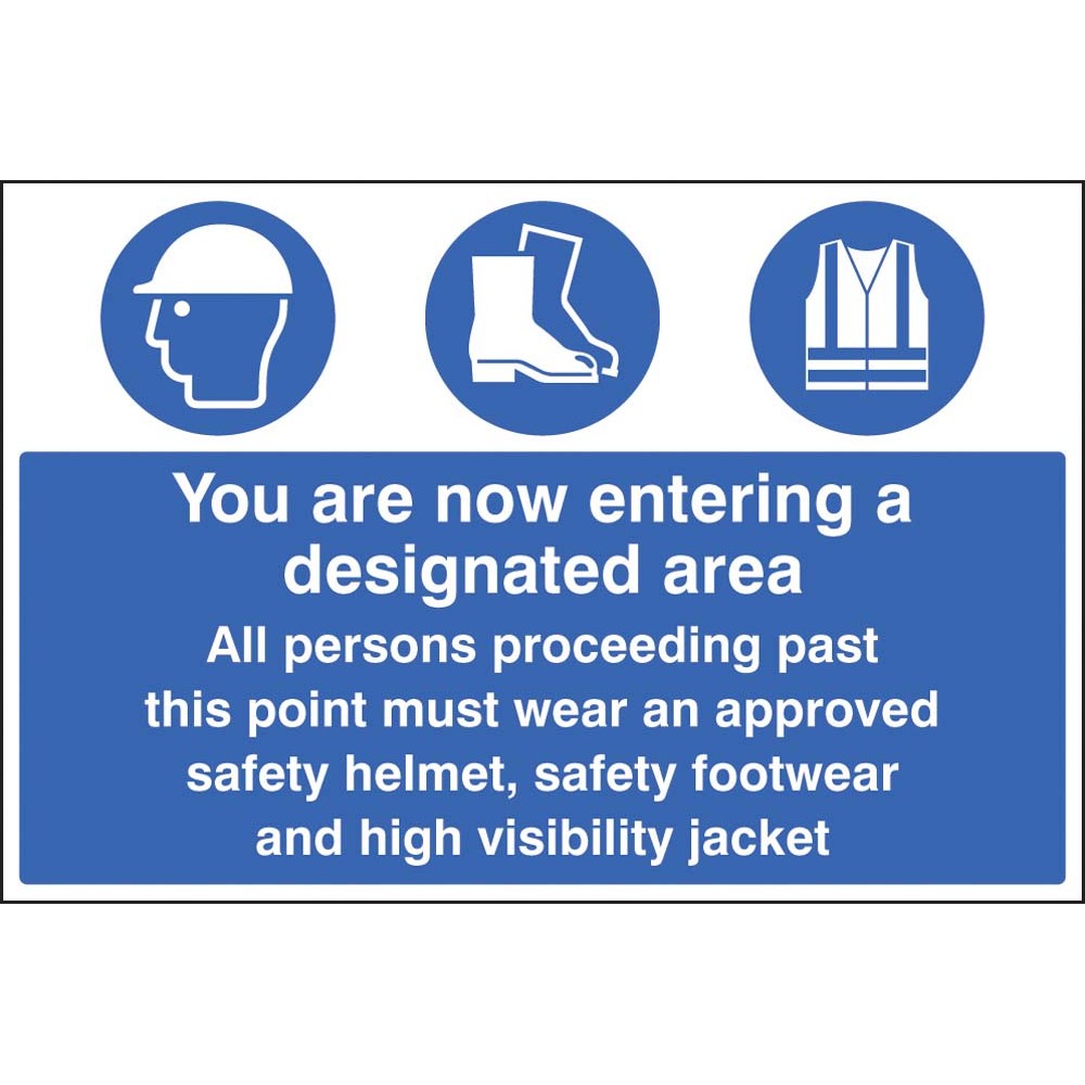 Entering Designated Area Must Wear Helmet - Footwear & Jacket - Industrial Signs