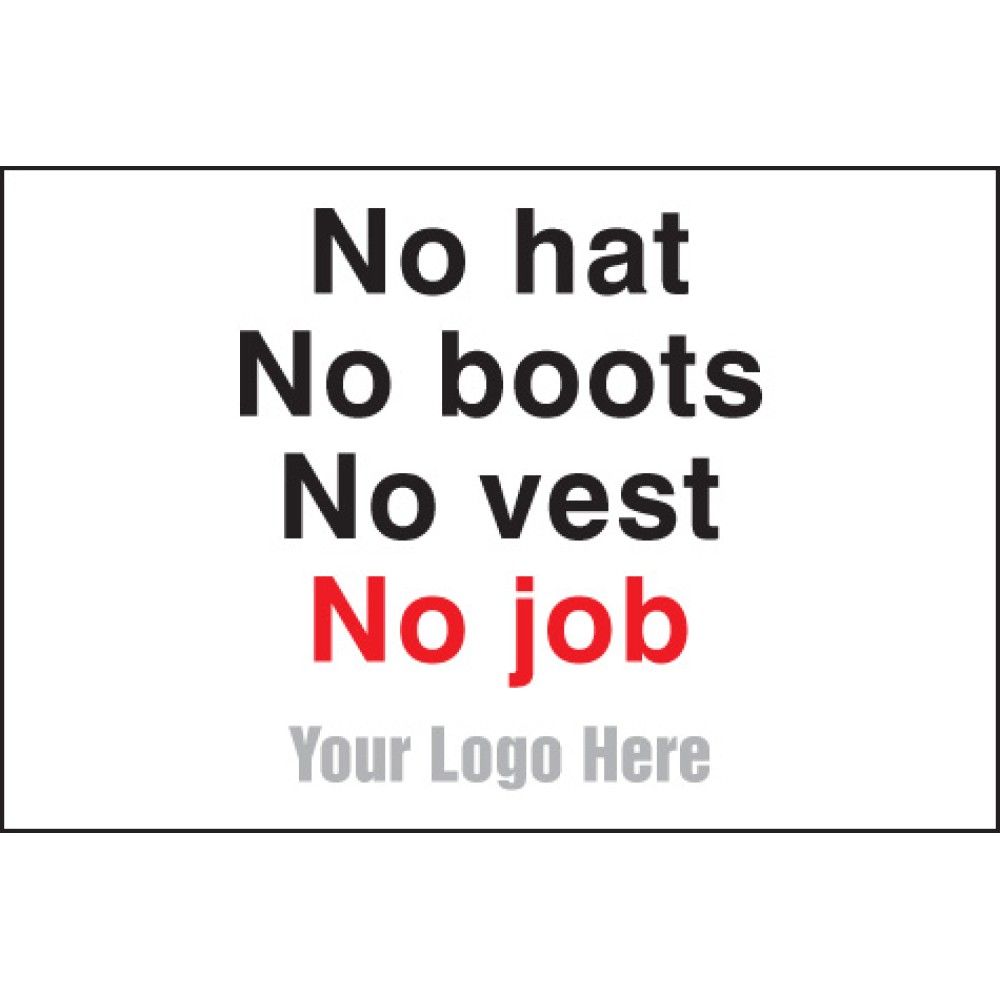 No Hats. No Boots. No Vest. No Job - Add a Logo - Site Saver - Industrial Signs