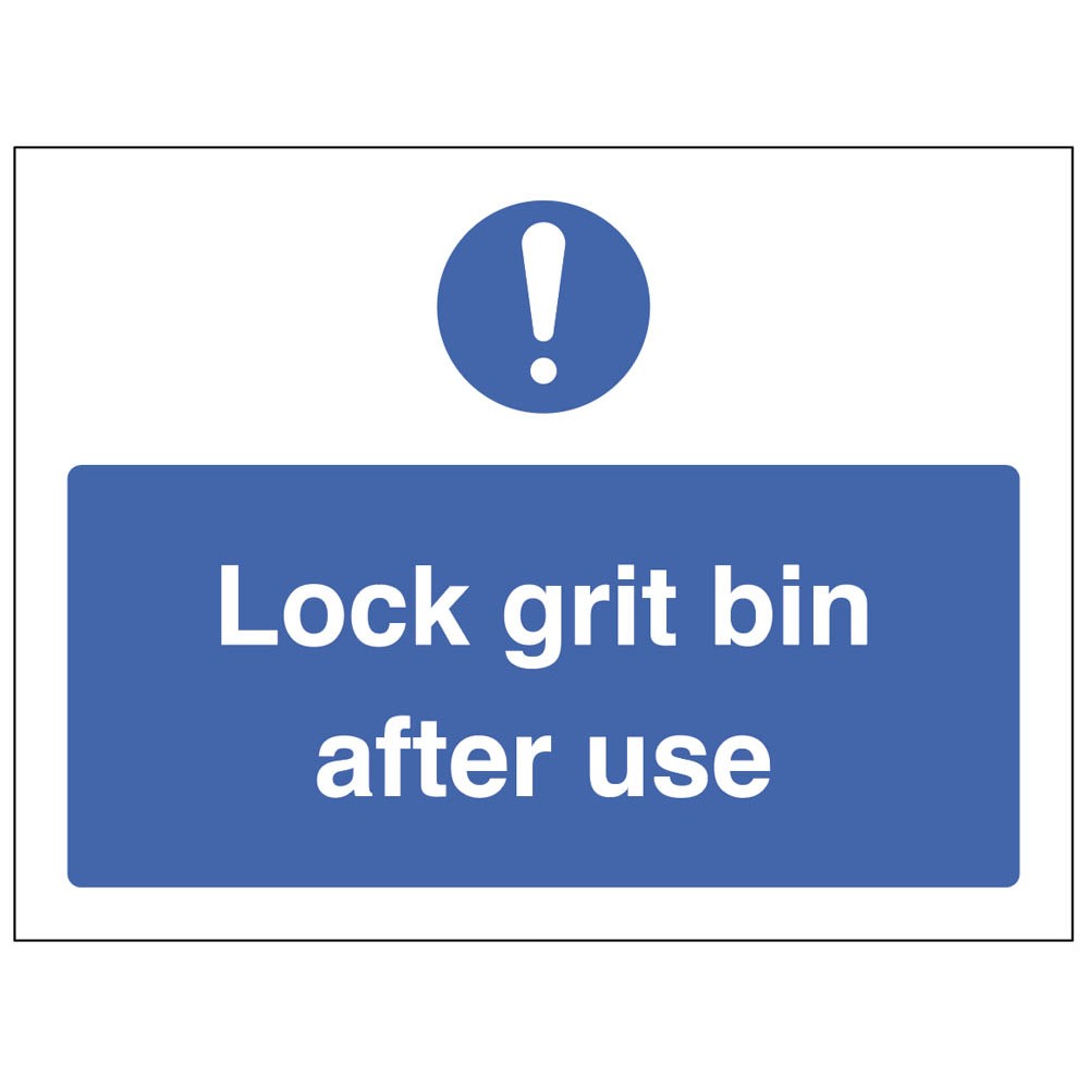This mandatory sign reminds viewers to lock the grit bin after use.