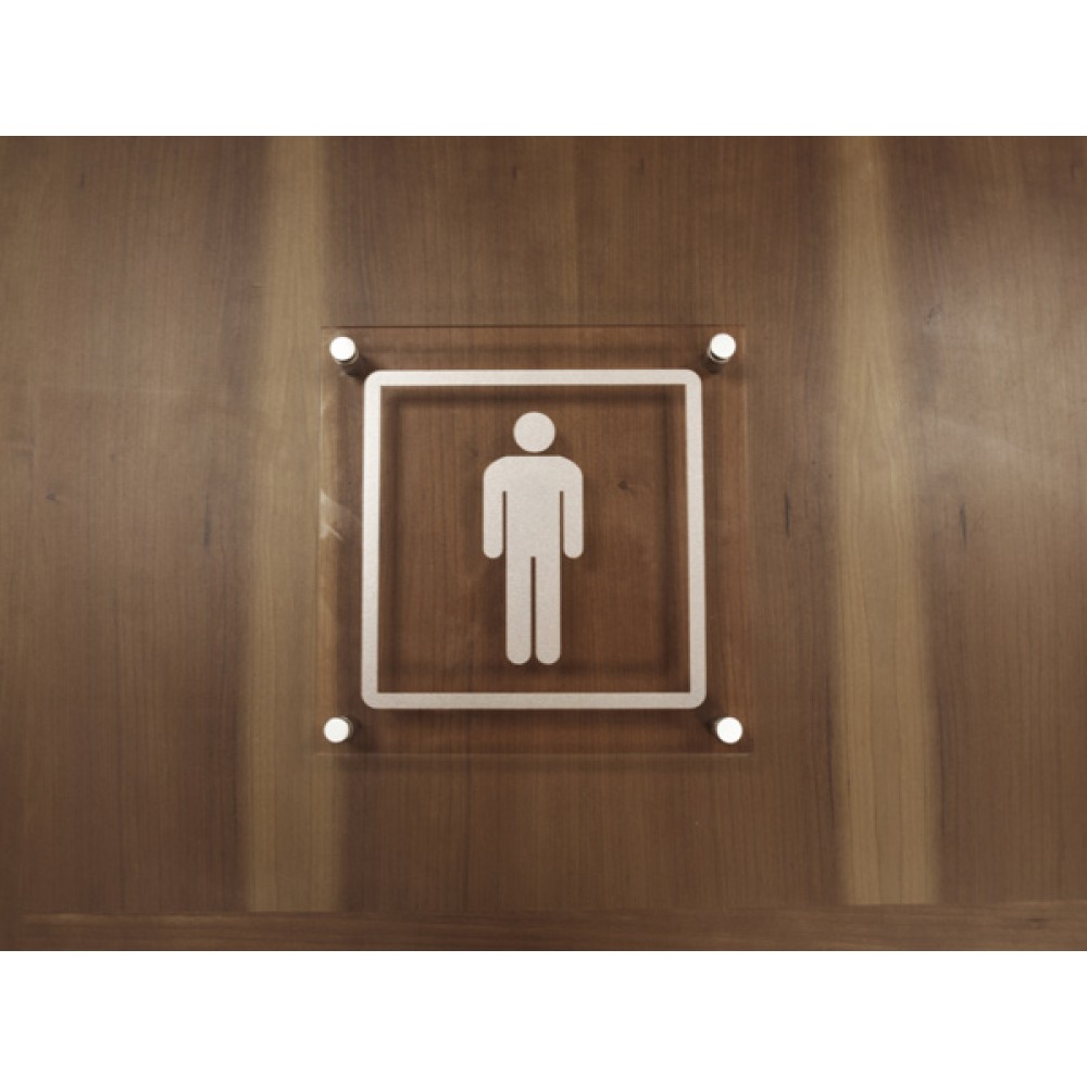 Gents Symbol - Clear Acrylic Visual Impact Sign with Stand-off Locators