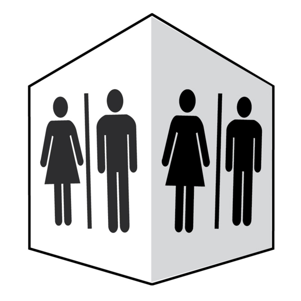 Use EasiFIX projecting signs to identify the location of toilets from several view points