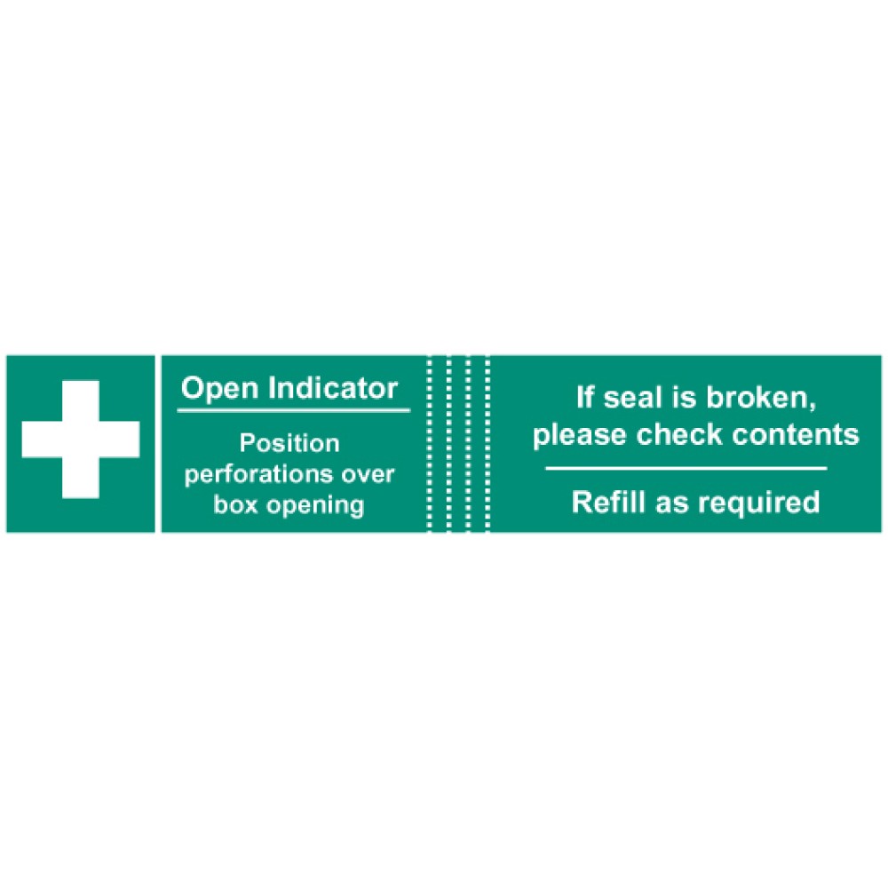 These easy-break labels have been designed to clearly identify when/if a first aid box has been opened. This help ensure that first aid boxes remain fully stocked