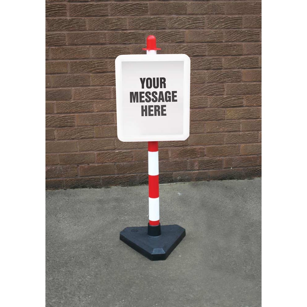 0.9mm high plastic post with 3kg recycled PVC base and 253mm frameRed and white post and base comple..