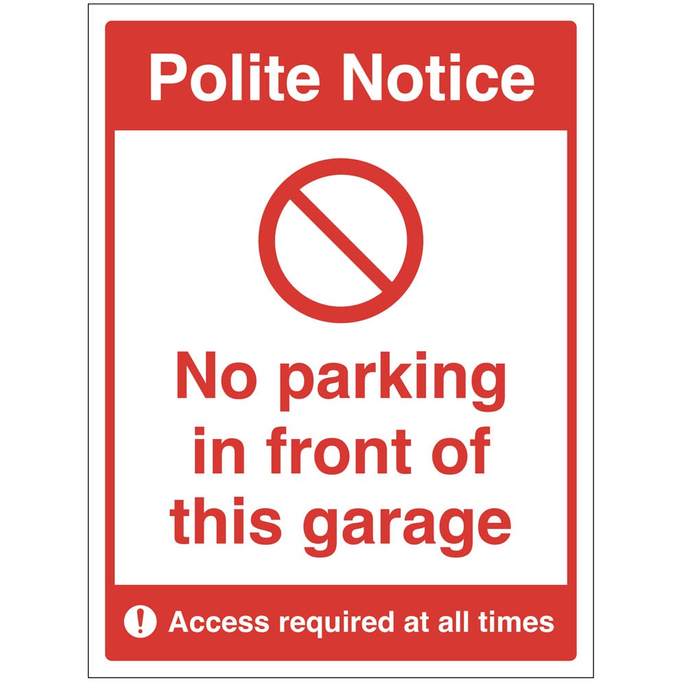 Polite Notice - No Parking in Front of this Garage - Industrial Signs
