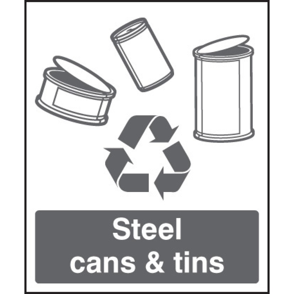 A recycling sign to ensure your workplace clearly identifies bins and areas dedicated to your steel cans and tin recycling programme