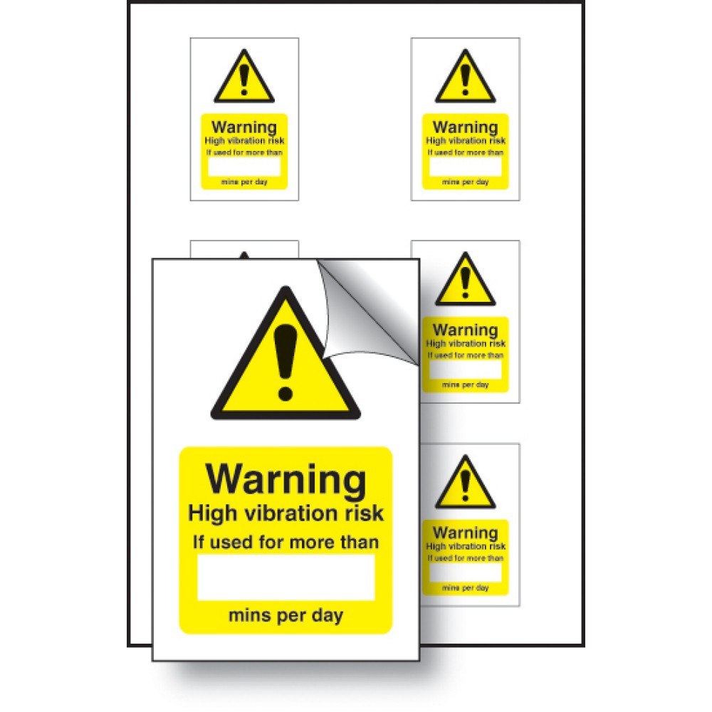 High Vibration Risk If Used Minutes / per Day Labels (Sheet of 6) - Industrial Signs