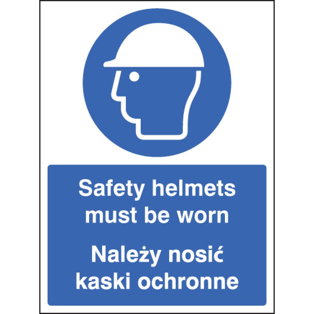 Safety Helmets Must be Worn (English / Polish) - Industrial Signs