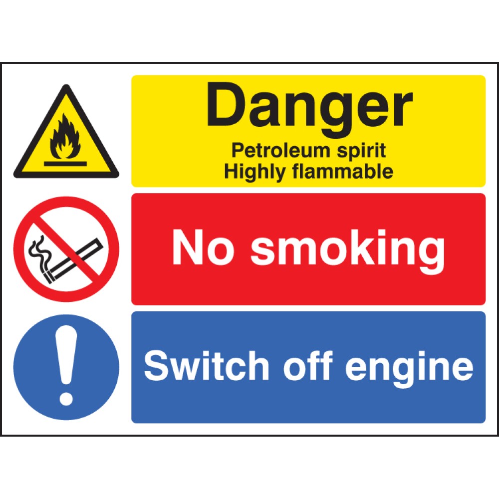 Petroleum Spirit - Highly Flammable - No Smoking - Switch Off Engine - Industrial Signs