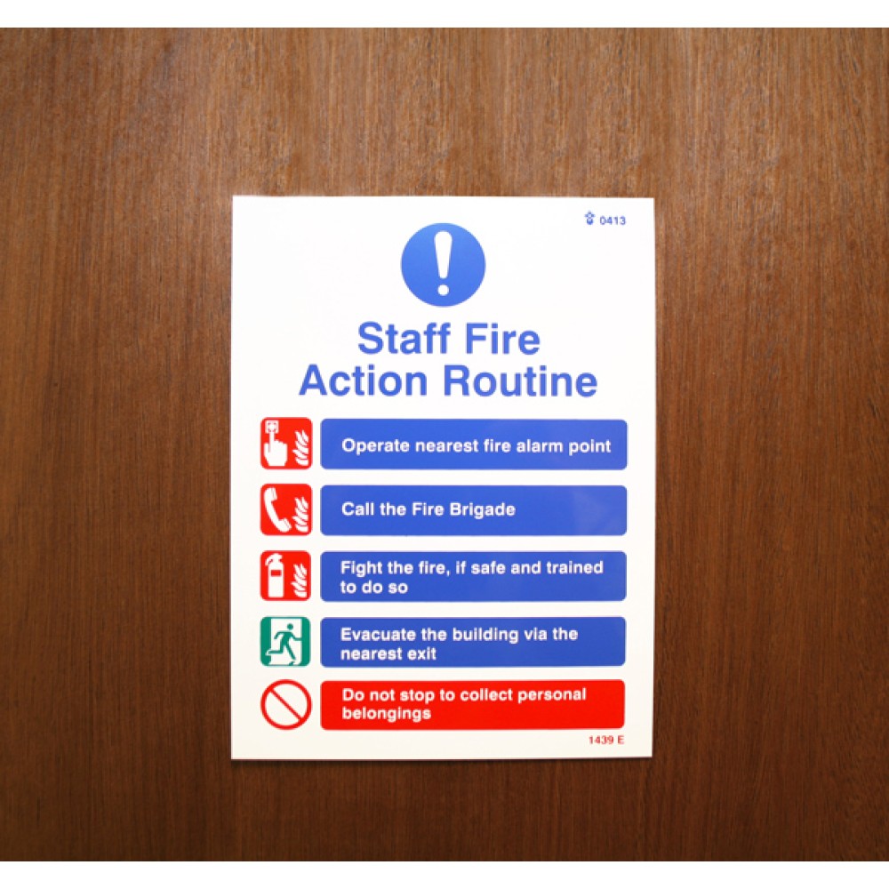 Additionally, the sign supports fire safety compliance by providing clear instructions tailored to buildings without lifts. It reinforces fire safety training by reminding occupants of the correct procedures in case of a fire emergency.