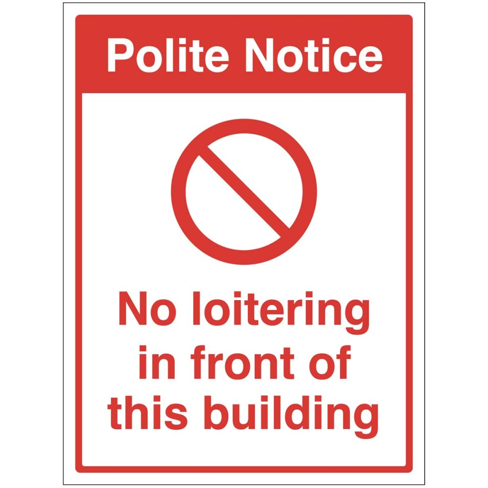 Polite Notice - No Loitering in front of this Building - Industrial Signs
