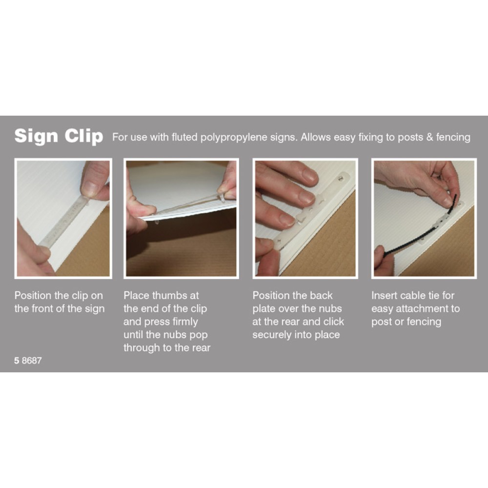 Simply push through the Site Saver sign and clip into place for fast and easy fixing of fluted polypropylene signs to posts and fencing. Cable ties not included.