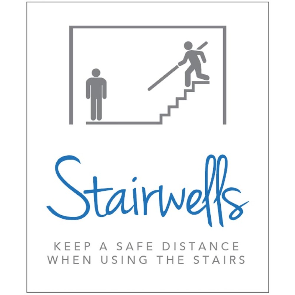 Displaying signage like this is an important step to helping shops and businesses to re-open as we get used to the "new normal" and put the necessary measures in place to improve safety, social distancing and hygiene to further minimise the potential impact of COVID19.Stairwell Sign - Keep a Safe Distance When Using the Stairs - Industrial Signs